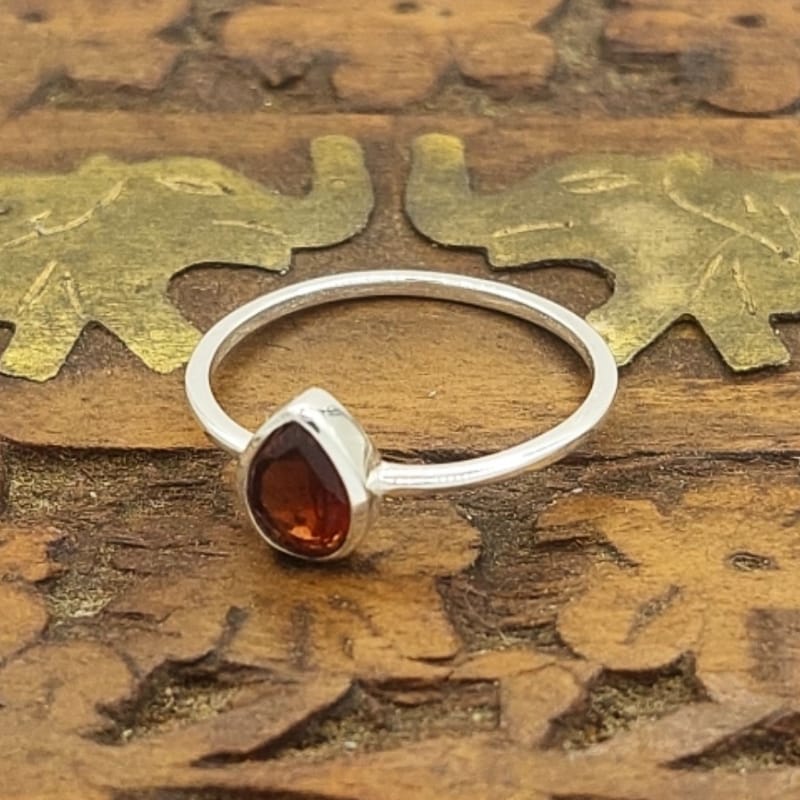 Feito em prata 925, o anel conta com uma pedra Granada em corte gota com tonalidade vermelha profunda. O anel possui acabamento artesanal que destaca a joia com charme e exclusividade, ideal para quem aprecia acessórios elegantes e com história. O produto tem design delicado, ideal para compor looks variados, desde os mais simples até os sofisticados.