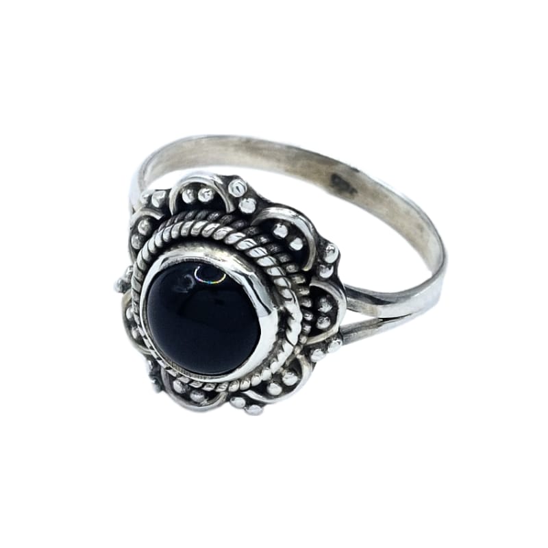Feito à mão com pedra natural ônix e prata 925, este anel de origem indiana é uma escolha oficial excepcional. Com um design elegante e moderno, este anel será uma atração impressionante para sua coleção de joias.