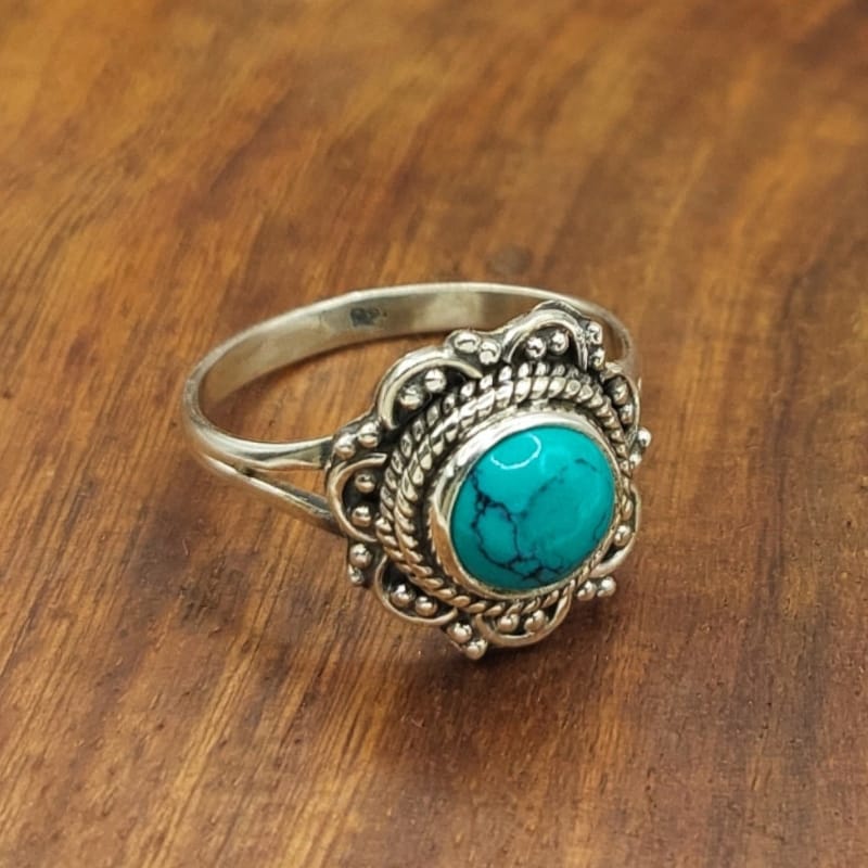 Anel de Prata 925 com Pedra Turquesa – Um Tesouro Artesanal da Índia