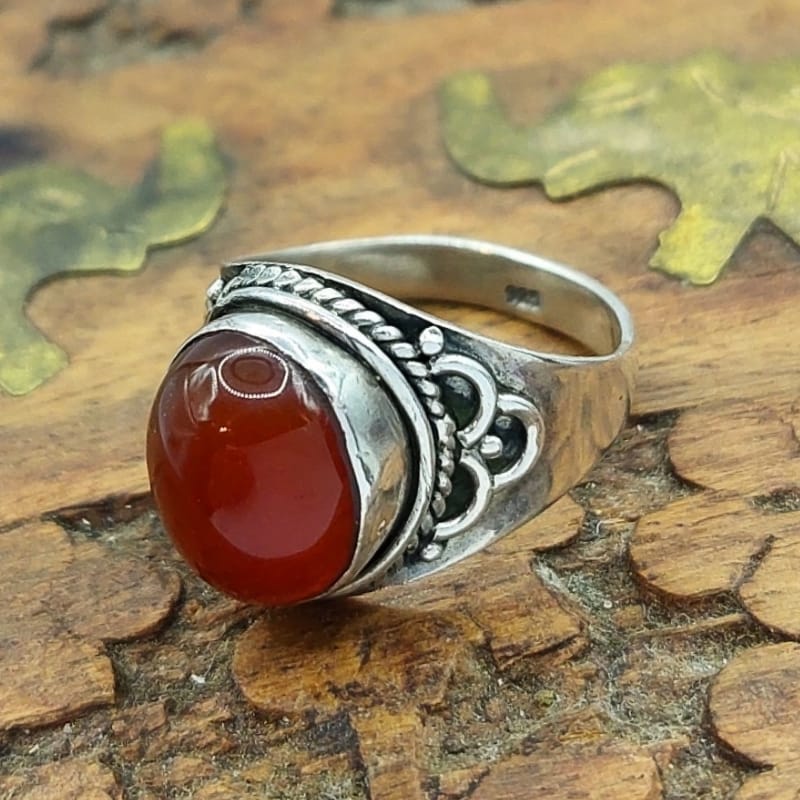 Envolva-se na magia do Oriente com o nosso Anel de Prata 925 Indiana, destacando uma deslumbrante Pedra Natural Ágata Vermelha. Este anel artesanal é uma expressão da destreza artística dos artesãos indianos, capturando a essência da tradição e do estilo. A Ágata Vermelha, com sua beleza única e propriedades metafísicas, eleva o apelo deste anel. Feito para impressionar, este anel é uma fusão perfeita de história e modernidade.
