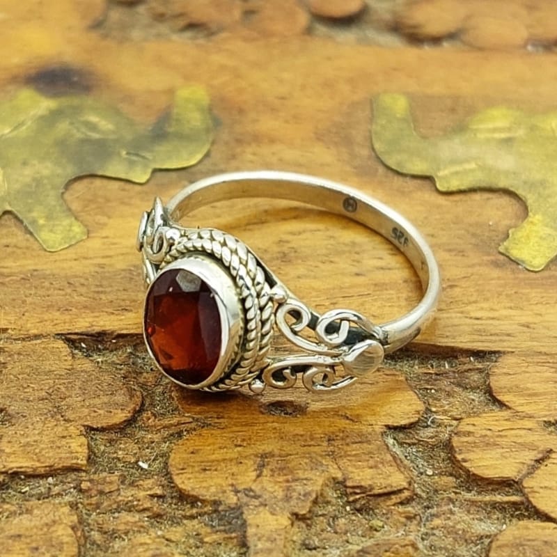 Este anel de prata 925 Bali é uma escolha elegante para aqueles que buscam qualidade e ficaram em suas joias. A granada lapidada é uma pedra natural que traz um toque de cor ao anel, enquanto a prata 925 adiciona brilho e tolerância. Este anel de design exclusivo é feito à mão com habilidade e precisão.
