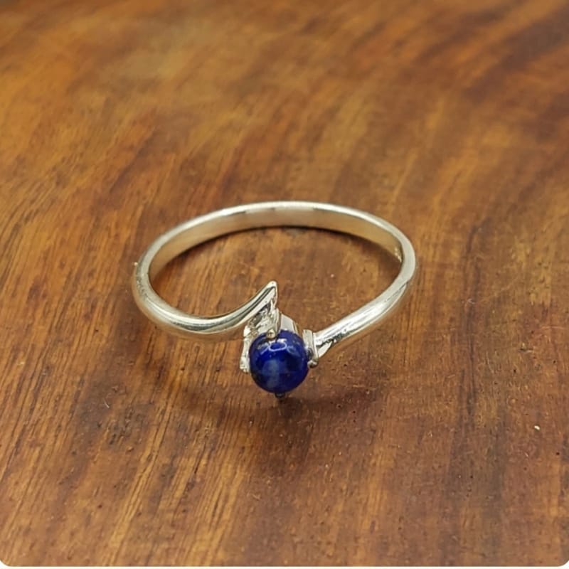 Anel Solitário em Prata 925 com Pedra Natural Lápis Lazúli - Índia