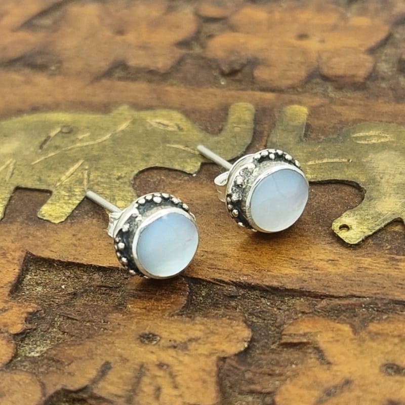 O brinco é confeccionado em prata 925, garantindo resistência e um acabamento fino. A peça conta com madrepérola natural, cuidadosamente lapidada para evidenciar seu brilho suave. O fecho é simples, tipo tarraxa, facilitando o uso e garantindo segurança no encaixe.