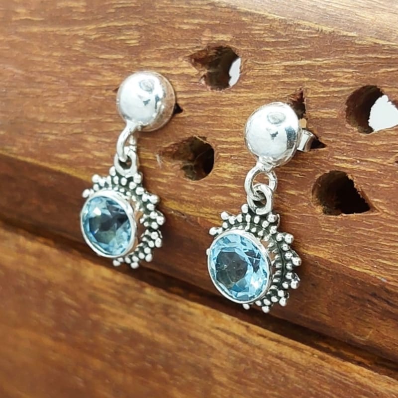 Um brinco feito em prata 925 com pedra natural topázio azul, perfeito para quem busca beleza e qualidade em joias.