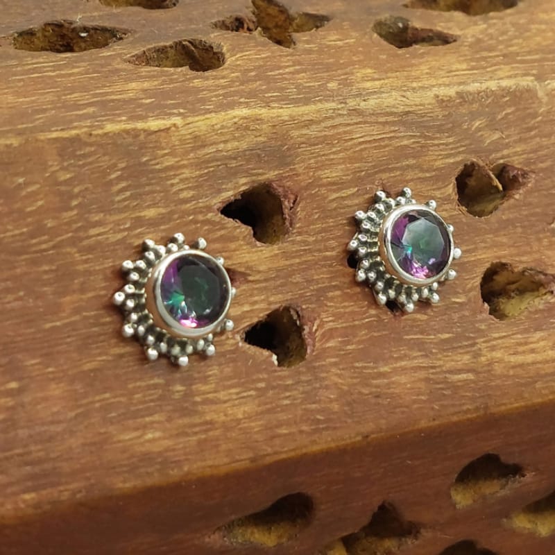 Brinco de Prata 925 Indiano Artesanal com Pedra Natural Topázio Místico Este brinco de prata 925 é uma peça artesanal indiana, decorada com uma pedra natural de Topázio Místico. O Topázio Místico é uma pedra conhecida por suas propriedades de cura emocional e por promover a intuição e a conexão espiritual.