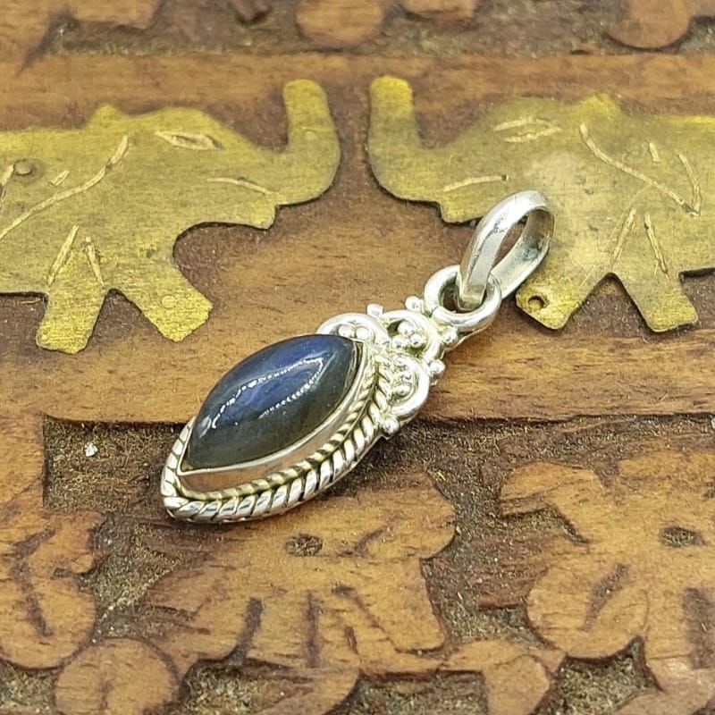 Pingente de Prata 925 - Pedra Labradorita - Navete - Índia