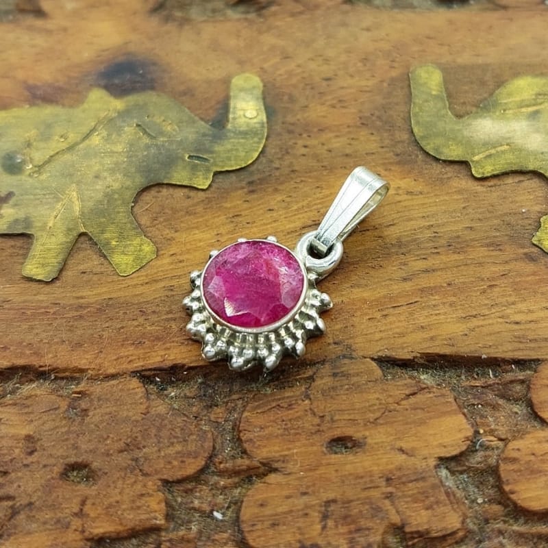 Pingente prata 925 e pedra Rubi Indiano Sol - P002