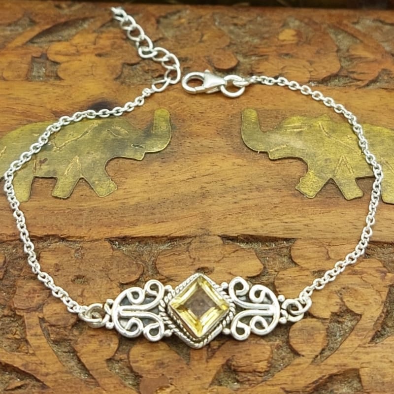 Esta Pulseira de Prata 925 elegante apresenta uma pedra de citrino natural e brilhante que é cuidadosamente colocada em uma estrutura de prata 925. Cada anel é cuidadosamente trabalhado à mão por artesãos indianos, tornando cada peça única. Esta Pulseira é o acessório perfeito para um visual casual ou elegante.