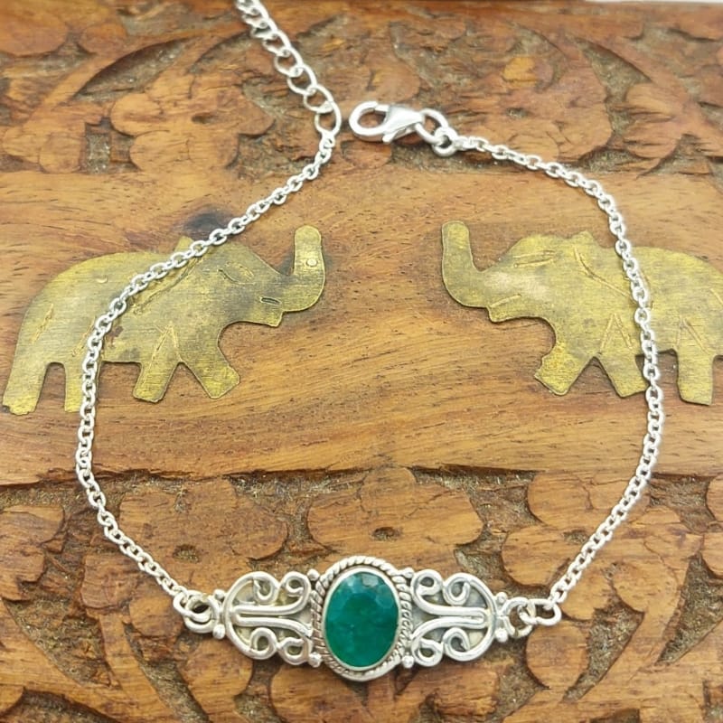 Descubra a elegância e sofisticação da pulseira de prata 925 com pedra esmeralda genuína, importada diretamente da Índia. Esta peça artesanal é confeccionada manualmente, garantindo um acabamento único e detalhado, ideal para quem busca exclusividade em joias clássicas. O design da pulseira apresenta uma corrente delicada que realça a beleza da pedra natural, perfeita para ocasiões especiais ou uso diário com estilo. A prata 925 assegura qualidade e durabilidade, resistente ao desgaste do uso cotidiano, enquanto a esmeralda proporciona um toque de cor vibrante e refinada.